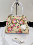Elegant Floral Pattern Handbag with Stylish Handle and Charm Accent